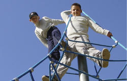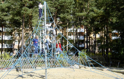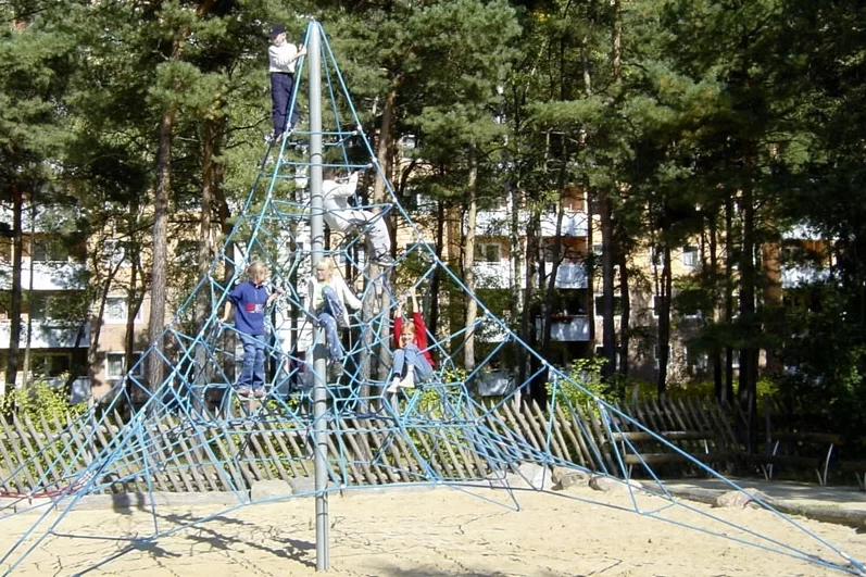 Gibt Gelegenheit sich auzutoben. Die Geräteabmessungen lassen die elastischen Eigenschaften eines verspannten Seiles voll zur Geltung kommen.